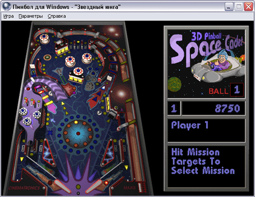 Рис 10.5. Окно программы Пинбол (Pinball)