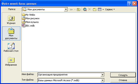 (Create). По умолчанию Access присваивает новой базе данных имя dbl, а