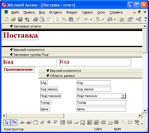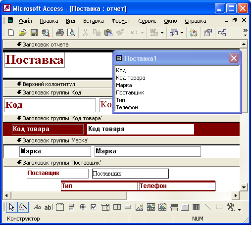 Рис. 10.4. Отчет "Подчиненный для продаж по годам" в режиме Конструктора