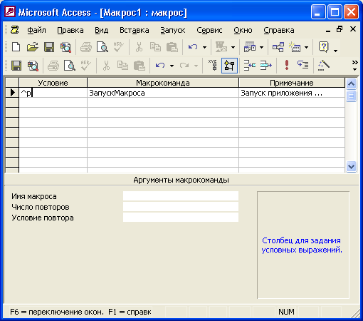 Сам макрос состоит из одной макрокоманды ЗапускМакроса (RunMacro), которая запускает