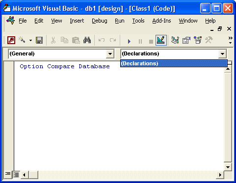 раздел открывается по умолчанию при открытии окна кода. Для стандартного модуля