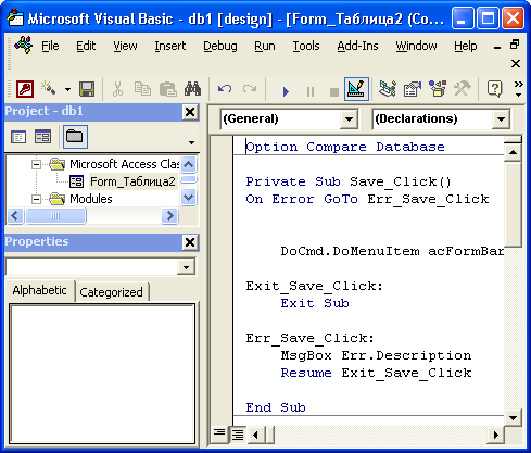 открыть окно редактора, достаточно открыть любой модуль Access (рис. 13.12).