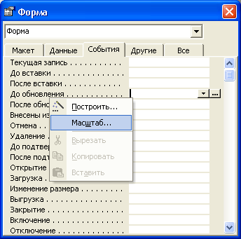углу формы, тогда выберется вся форма). В окне свойств отобразятся свойства