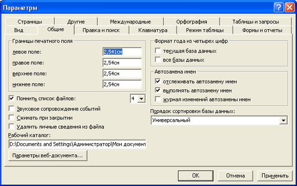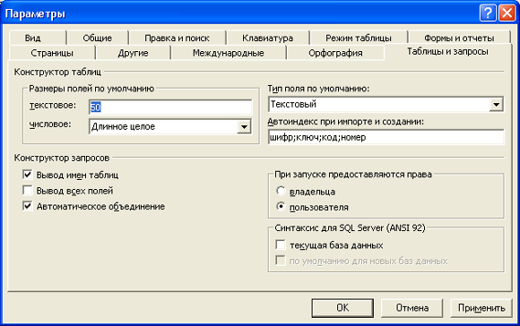 мы хотим рассказать о настройке параметров среды Access. При установке Microsoft