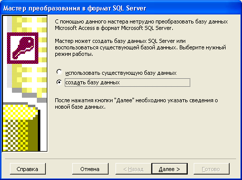 и запустится Мастер баз данных Microsoft SQL Server (Microsoft SQL Server Database