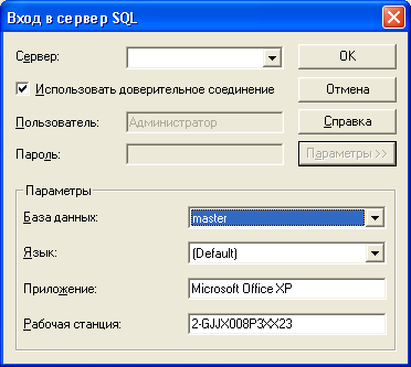 Access обнаруживает на локальном компьютере MSDE, то имя сервера автоматически