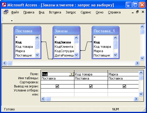 панели инструментов отобразите все три панели запроса: схему, бланк и запрос