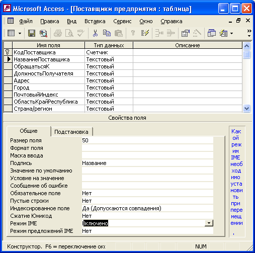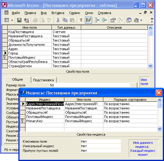 данных выполняется некорректно. В Microsoft Access индексы хранятся в том же
