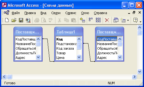 Access 2002 присутствует возможность отображения нескольких связанных таблиц
