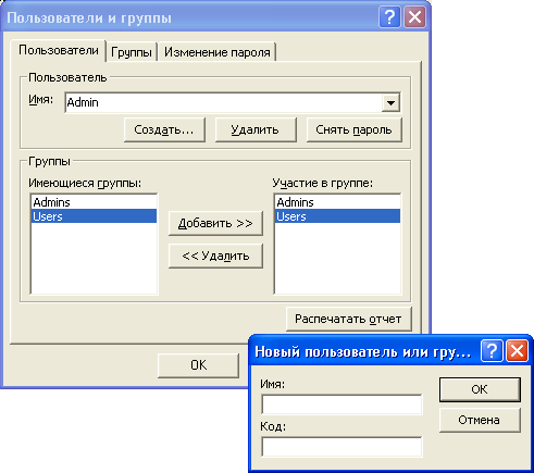 Защита, Пользователи и группы