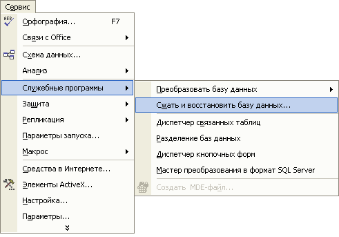 Access 2002 так, чтобы конкретная база данных или проект автоматически сжимались