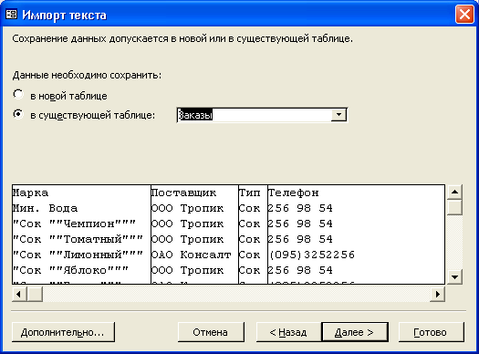 формату таблицы базы данных Access 2002, то на данном шаге Мастера импорта