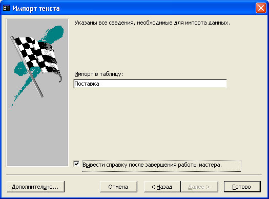 окне мастера необходимо определить имя таблицы, в которую будут помещены импортируемые