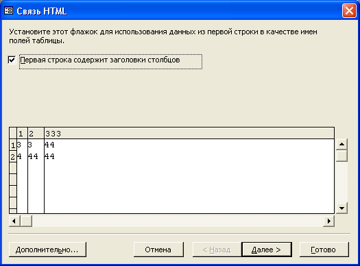 документа HTML можно либо создавать новую таблицу Access, либо добавлять данные