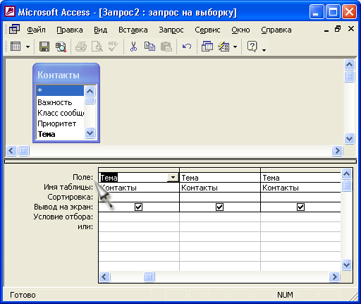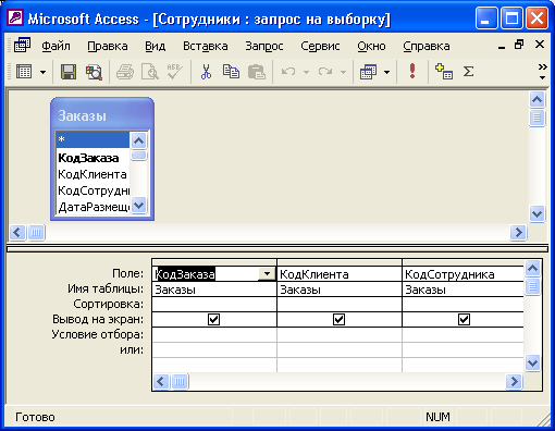 Запрос в режиме Конструктора