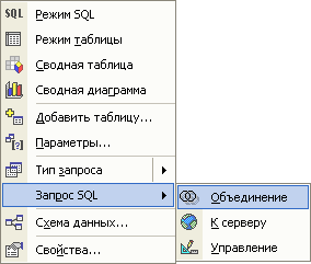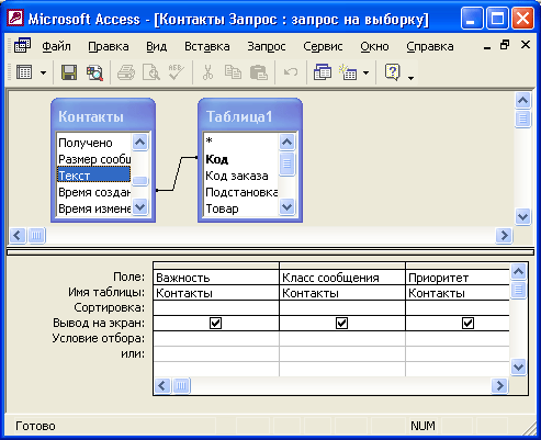 Отображение левого внешнего объединения в окне Конструктора запросов