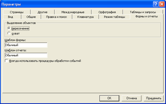 (Forms/Reports) (рис. 5.12). С помощью этой вкладки можно задать