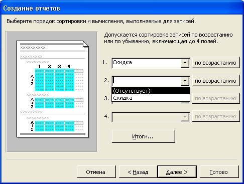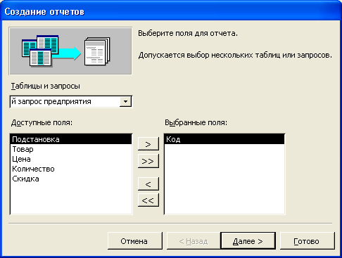 диалоговому окну Мастера отчетов, нажмите кнопку