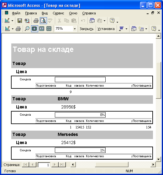 Рассмотрим процедуру создания вычисляемых полей на примере отчета "Товары