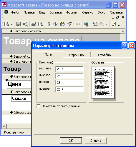 (Print Preview). Access напечатает отчет, используя текущие настройки