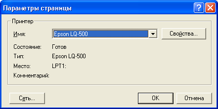 принтера. Если вы хотите поменять принтер, ориентацию страницы или значение