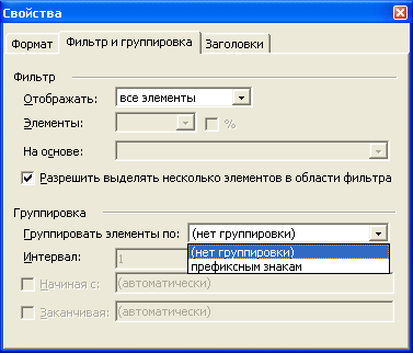 Рис. 8.39. Фильтр для первых элементов сводной таблицы