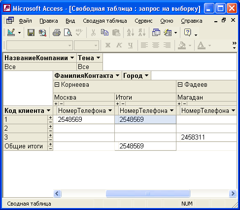 результат перекрестного запроса, но далее вы убедитесь, как легко можно с ней