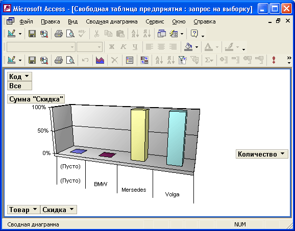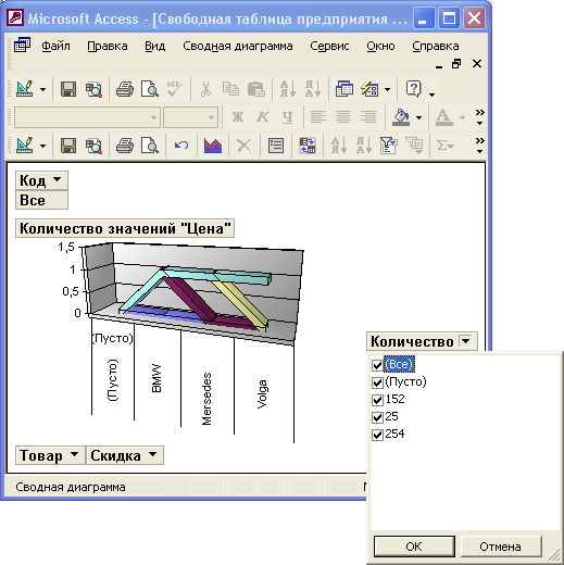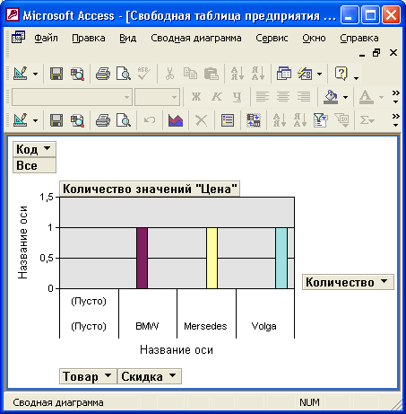 (PivotChart View), и на экране появится сводная диаграмма, примерно такая,