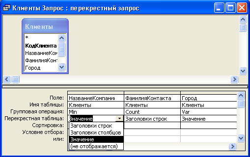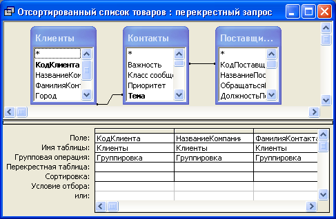 Перекрестный запрос в режиме Конструктора