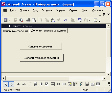 между вкладками формы выполняется щелчком кнопкой мыши по ярлыку вкладки. Вкладки