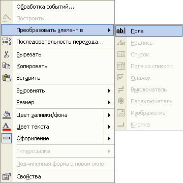 Вместо контекстного меню для выполнения операции можно использовать команду меню Формат, Преобразовать элемент в (Format, Change To).