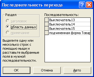 порядок следования вкладок в форме: выделите в списке название вкладки, которую