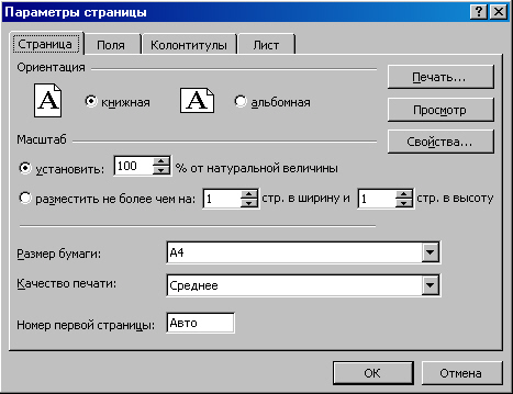 Рис. 101. Закладка Страница команды Параметры страницы.