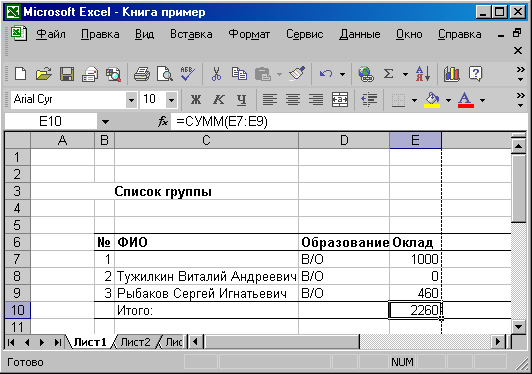 1. Откройте файл Список_сотрудников.х1s на листе Общий список.