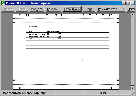 7. Нажмите на кнопку Просмотр, убедитесь, что данные при печати умещаются на одной странице (рис. 105).