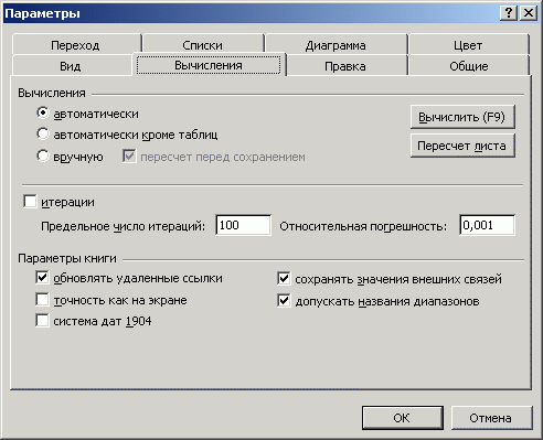 Рис. 2.27. Диалоговое окно Параметры, вкладка Вычисления