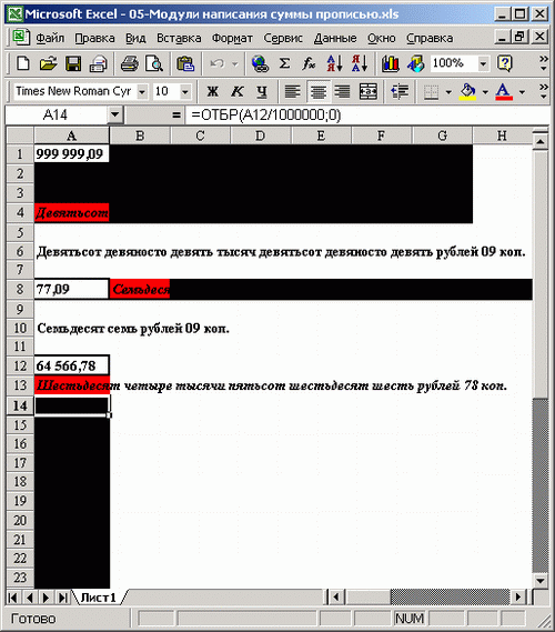 Если ваше предприятие не относится к разряду последних, возьмите на вооружение готовые модули, описанные в этой главе. С их помощью вы можете генерировать представление дат и числовых величин в нужном виде и избавите себя от утомительной работы по вводу сумм прописью с клавиатуры. Выполняя задания, поставленные в этой главе, вы научились реализовывать на Excel сложные алгоритмы, ознакомились с новыми функциями и средствами, в частности с командами подменю Зависимости.