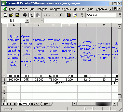 Рис. 8.2. Таблица для расчета налога на дивиденды