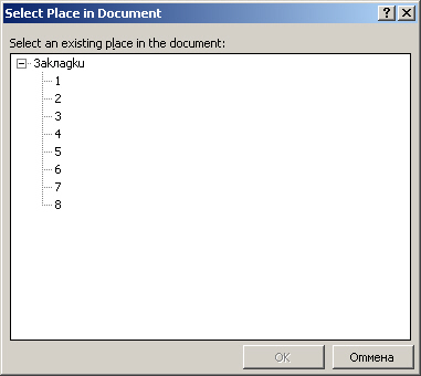 Выбор места в документе, используемое для выбора закладки другой страницы10. Выберите наименование закладки и нажмите кнопку ОК. Вы возвращаетесь в диалоговое