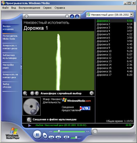 1. В окне программы Windows Media нажмите кнопку компакт-диск. Если вы вставили компакт-диск в устройство для чтения компакт-дисков, в окне появится список произведений.