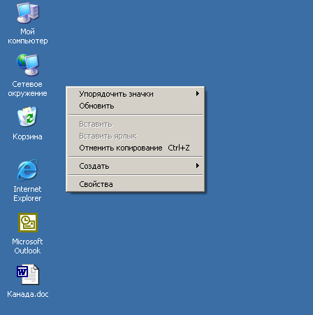 При отпускании кнопки мыши раскроется контекстное меню, показанное на рис. 3.1. Выберите в нем пункт Копировать (Copy Here). На рабочем столе появится копия ярлыка.
