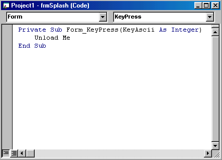 Редактор кода вызывается автоматически при двойном щелчке мыши на форме проекта или командой Code (Код) меню View (Вид). Для каждого элемента проекта (формы или программного модуля) открывается отдельное окно редактора кода. Соответственно это окно появляется в списке окон меню Window (Окно). В большом проекте удобнее всего работать из Проводника проекта. В этом случае редактор кода вызывается кнопкой View Code (Просмотр кода) панели инструментов окна Проводника.