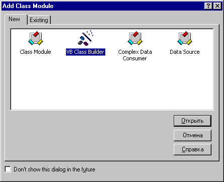 Рис. 15.7. Диалоговое окно Add Class Module для запуска построителя классов