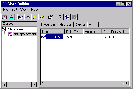 При запуске построителя классов открывается окно Class Builder (рис. 15.8) для проектирования классов, в котором выполняется вся работа по созданию или дополнению класса. Это окно состоит из четырех вкладок: