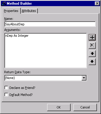 Слева от списка в диалоговом окне Method Builder (Построитель методов) находятся кнопки управления аргументами. Они выполняют следующие действия: