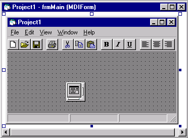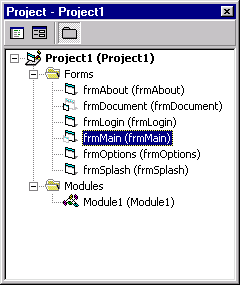 Итак, после нажатия кнопки Finish работа мастера VB Application Wizard завершается. Таким образом создано приложение в стиле MD1 (рис. 2.13), которое содержит все основные элементы проектируемого приложения, выбранные на каждом из шагов работы мастера: