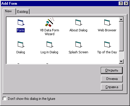 Visual Basic б предлагает разработчику набор готовых стандартных шаблонов форм, широко используемых практически во всех его приложениях.