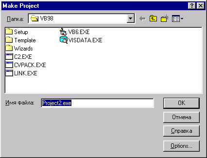 3. В поле Имя файла диалогового окна Make Project (Создать проект) ввести имя исполняемого файла или оставить имя, предлагаемое Visual Basic по умолчанию исходя из имени проекта.
