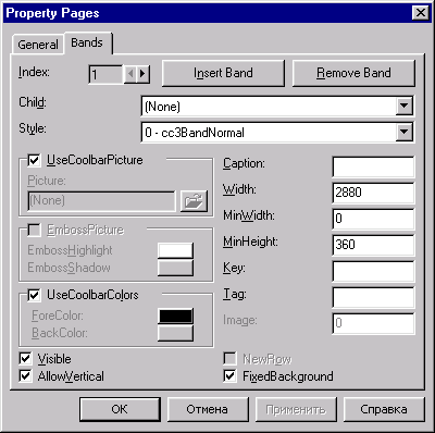 Рис. 7.17. Диалоговое окно Property Pages для объекта CooiBar