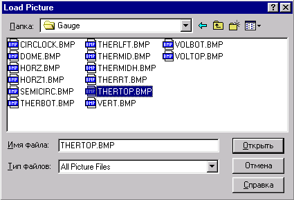 Для задания графического изображения, помещаемого на кнопке, выделите свойство picture и нажмите кнопку, расположенную в правом столбце. В результате откроется диалоговое окно Load Picture (рис. 8.9), используя которое вы можете выбрать на диске файл, содержащий изображение.